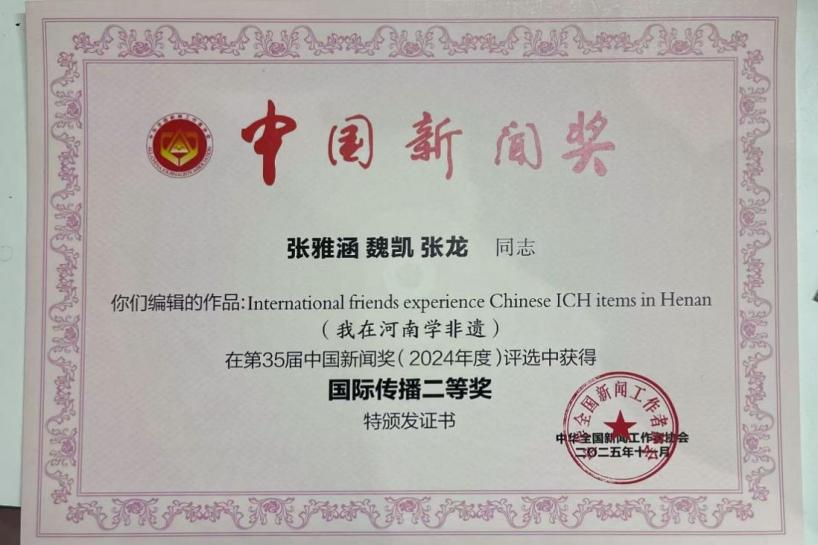 另一位获奖校友、大河网记者魏凯,其参与采制的系列报道《我在河南学非遗》,创新采用“外视角”叙事,邀请外国友人沉浸式体验汴绣、钧瓷等河南特色非物质文化遗产技艺,以国际化叙事语态生动讲述中国文化故事。报道不仅在国内收获热烈反响,更在海外平台掀起传播热潮,有效提升了河南非遗文化的国际影响力。