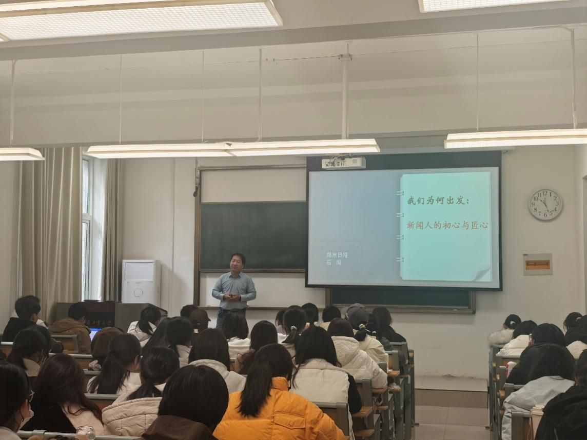 11月24日上午,第124期“传之梦”论坛讲座在嵩山路校区实验楼3207教室举行。本次论坛邀请到了郑州日报深度报道部负责人石闯。他以“我们为何出发:新闻人的初心与匠心”为主题,为新闻与传播学院2025级新生带来一场有深度、有思考的专业讲座。讲座由新闻与传播学院副院长孙占利主持。