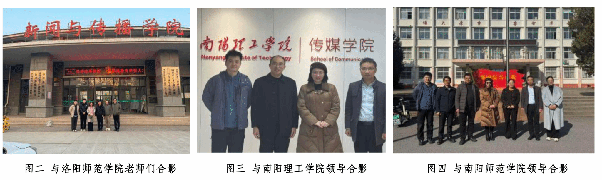 为进一步深化校际交流,加强新闻传播学科建设,提升研究生招生宣传效能,河南工业大学新闻与传播学院近期赴南阳、洛阳两地高校,成功开展“研招面对面”系列招生宣讲与调研活动。学院副院长夏颖、网络与新媒体系主任张合斌、播音与主持艺术系主任刘阳、研究生办公室主任王竞一行于11月21日至22日赴南阳师范学院、南阳理工学院,开展第七次“研招面对面”系列活动;于12月5日,赴洛阳师范学院开展第八次“研招面对面”系列活动。活动旨在介绍学院研究生培养特色、拓展优质生源,并促进校际学科交流与合作。