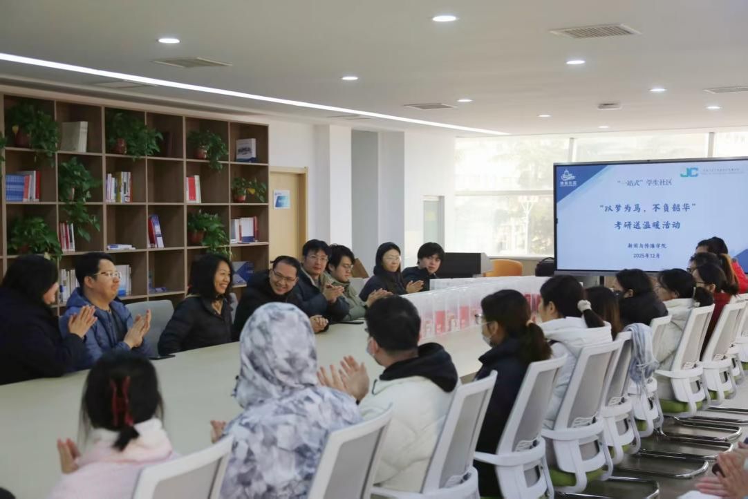 为凝聚研途奋进力量,鼓舞学子逐梦前行,传递关怀厚爱与美好祝福,新闻与传播学院于12月17日上午在钟楼三楼“一站式”学生社区举行了“以梦为马,不负韶华”考研送温暖活动。新闻与传播学院党委书记杨子江、学院院长李晓云、副院长孙占利、团委副书记孔丽、各年级辅导员及考研学生代表共同参与。活动由党委副书记张小鸥主持。