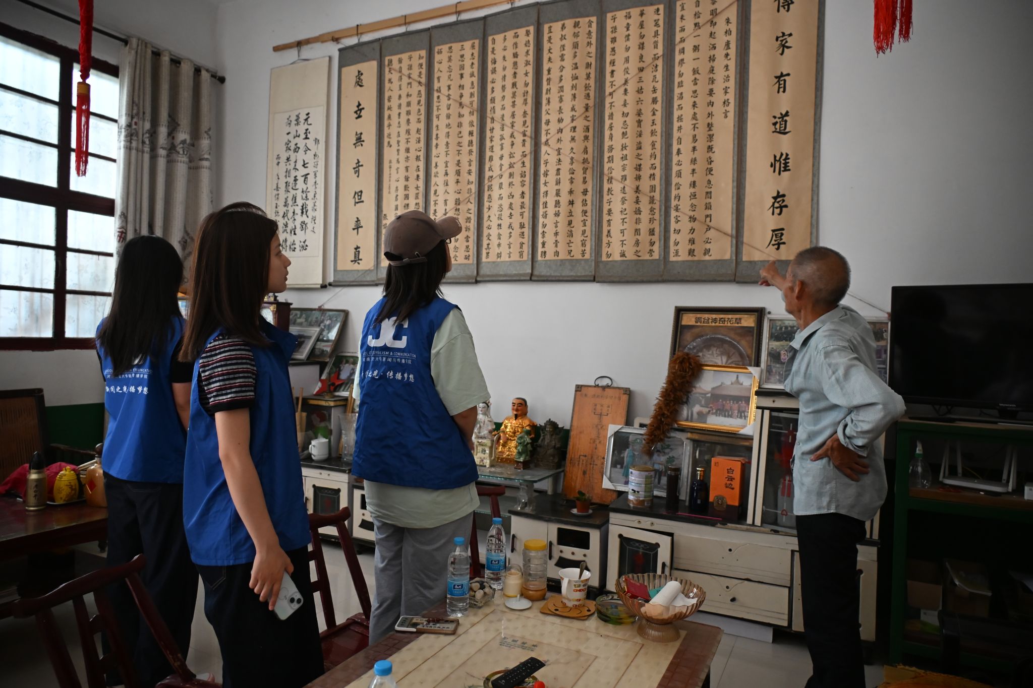 随后,队员们来到李举义爷爷家中。面对远道而来的青年学子,李爷爷倍感欣慰,坦言自己“就喜欢年轻人,尤其是有文化、有理想的大学生”。谈及村庄历史,李爷爷滔滔不绝,如数家珍:他潜心研究地方史志多年,广泛查阅文献,实地走访村民,编著出版了《冠军侯国史话》一书,详尽梳理了自汉代以来冠军村各历史阶段的发展轨迹。在与队员们交流过程中,李爷爷还特别讲述了冠军村名称的由来——“汉朝大将霍去病被封为‘冠军侯’,这片土地也因此得名为‘冠军村’,寓意‘一军之冠,英勇无敌’。”随后,李爷爷又谈到乡村的姓氏变迁,并找出相关照片和文字史料以佐证,交流尾声,李爷爷欣然展示了他多年来收藏的历史古玩,器物虽旧,却承载着厚重的历史记忆,队员们深受触动,对这位满腹史识、热心传承的老人肃然起敬。