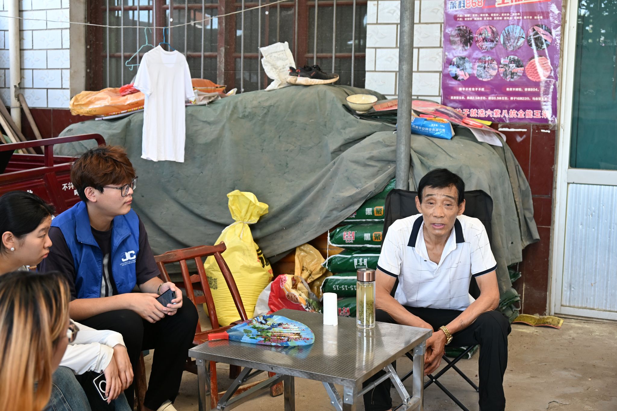队员们首先来到了党员、退役军人、退休村干部李兴宇家,了解到队员们此行的目的后,李老热情接待,毫无保留地与队员分享他所了解的村庄历史。他从“拴马桩”的故事讲起,讲到村内主要姓氏的族谱渊源,再到婚丧嫁娶、节庆风俗、人口迁移、自然灾害等多个方面,向队员们讲述了冠军村的发展变迁和风俗人情。这些珍贵的口述史料不仅充实了村志的内容,也让队员们对冠军村的风俗文化有了更为清晰而深刻的认知。在聆听过程中,队员们以纸笔记录、录音设备采集等方式进行了多角度资料存档,为后续的整理与撰写打下了扎实基础。